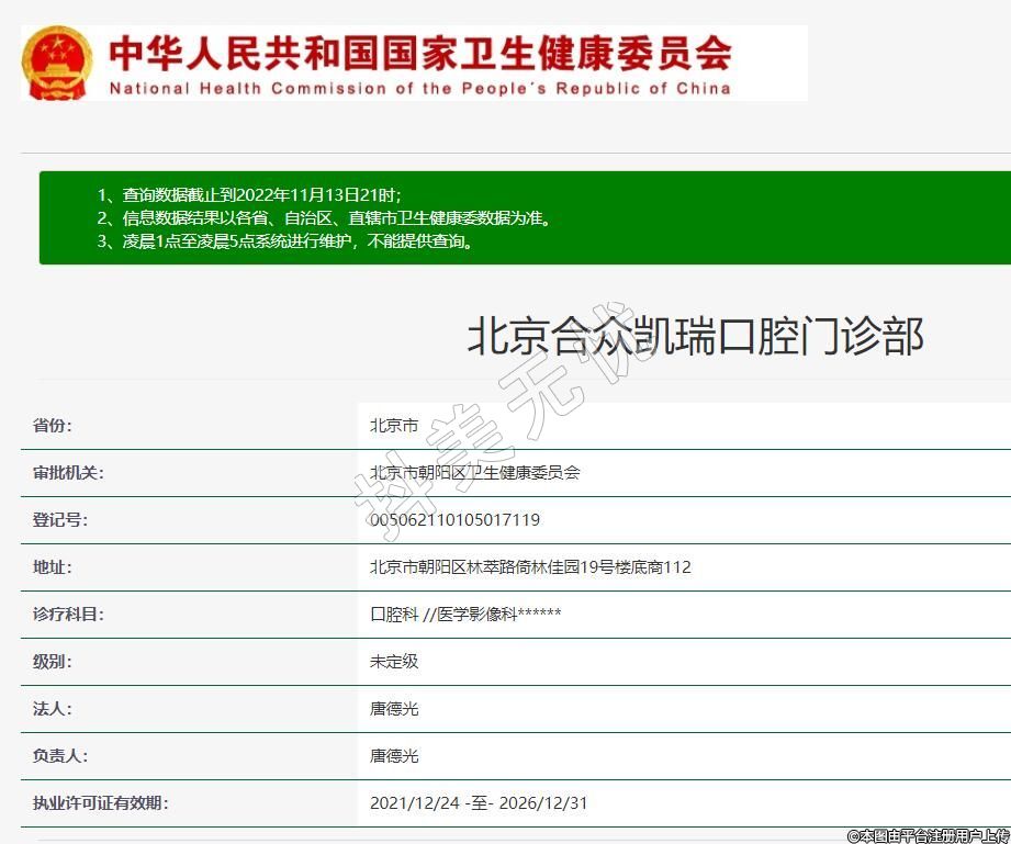 北京合眾凱瑞口腔2008-07-09成立,地址:北京市朝陽區(qū)林萃路倚林佳園19號樓底商112,診療科目:口腔科 //醫(yī)學影像科******