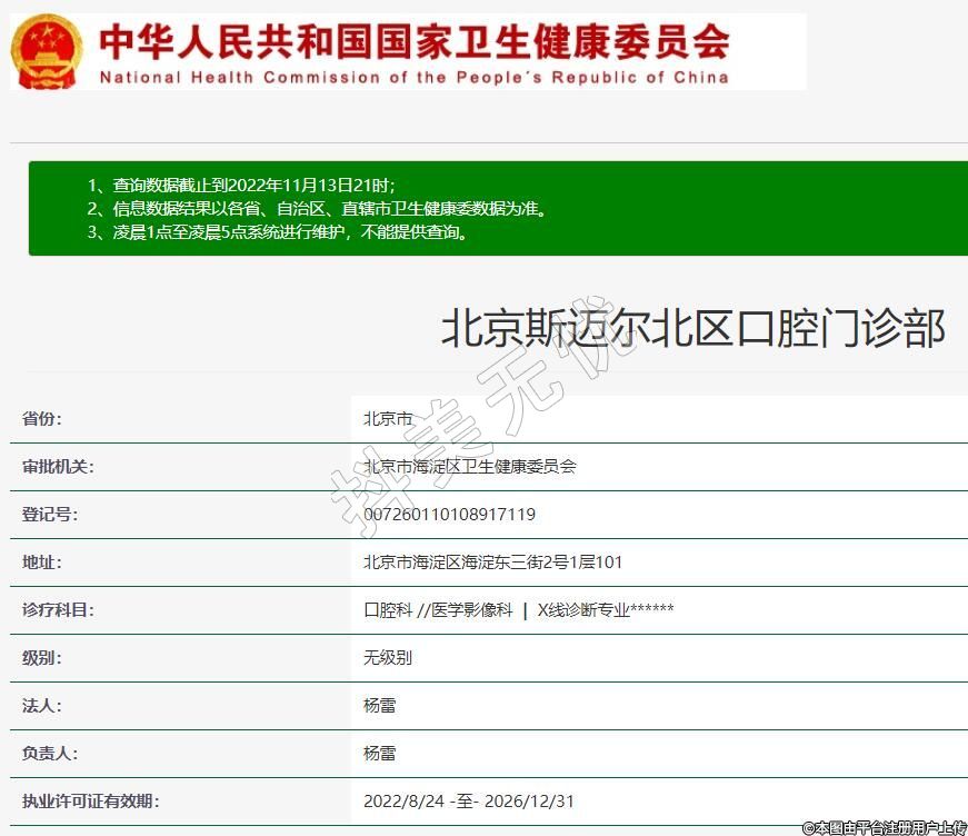 北京斯邁爾北區(qū)口腔2022-03-09成立,地址:北京市海淀區(qū)海淀東三街2號1層101,診療科目:口腔科 //醫(yī)學影像科 | X線診斷專業(yè)******