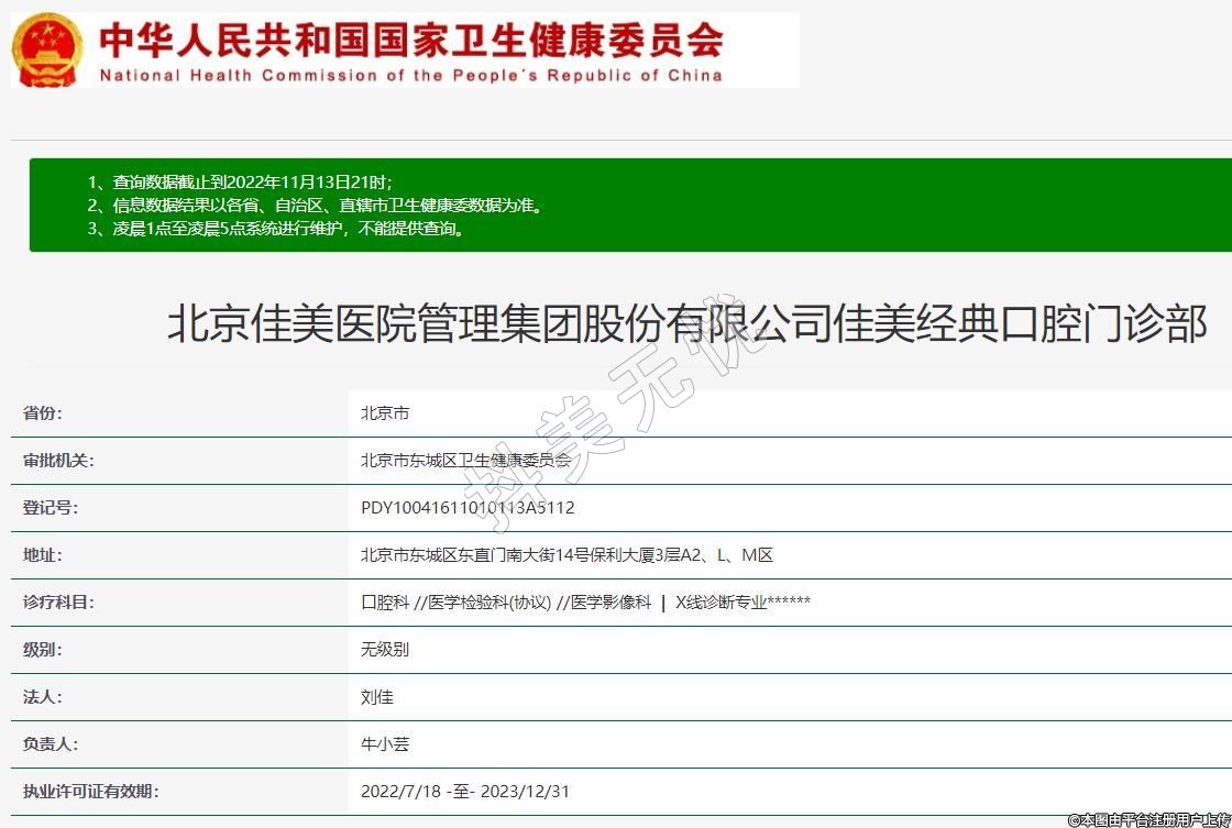 北京佳美醫(yī)院管理集團股份有限公司佳美經(jīng)典口腔門診部