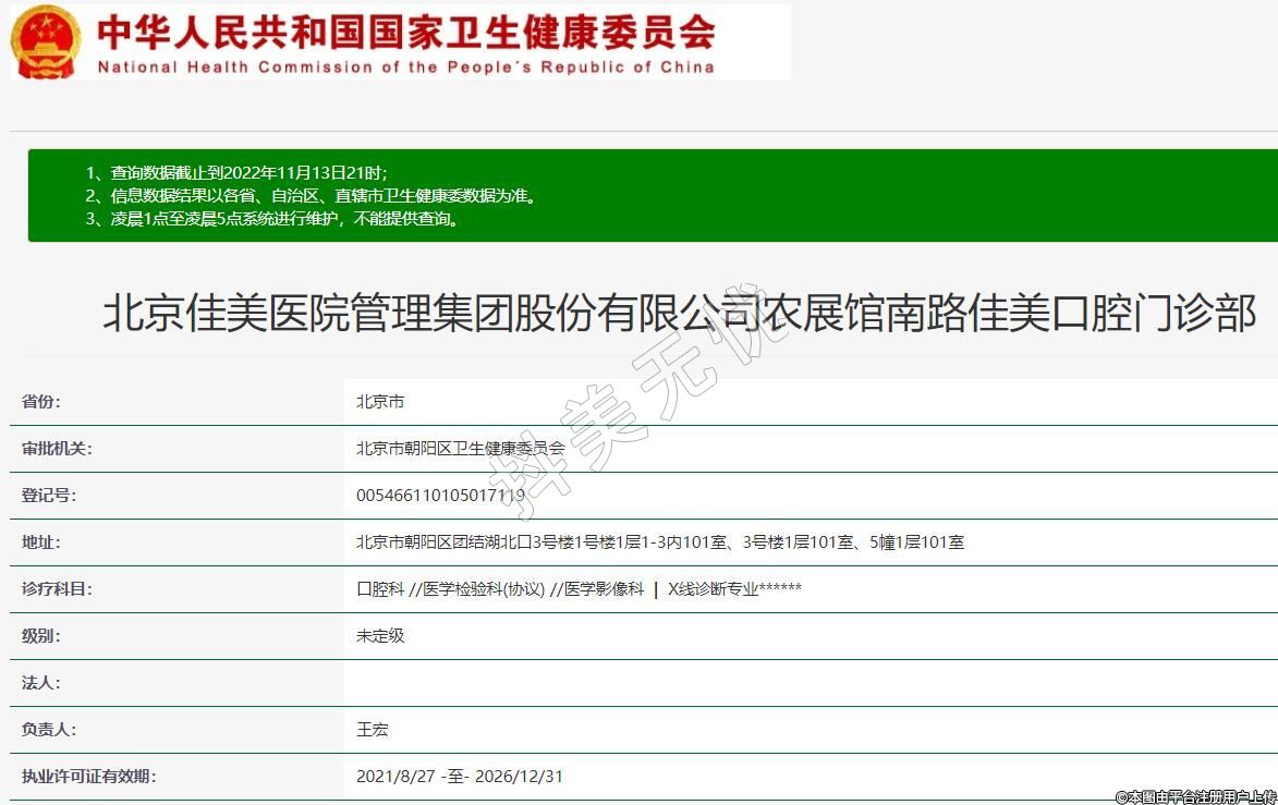 北京佳美醫(yī)院管理集團(tuán)股份有限公司農(nóng)展館南路佳美口腔門診部