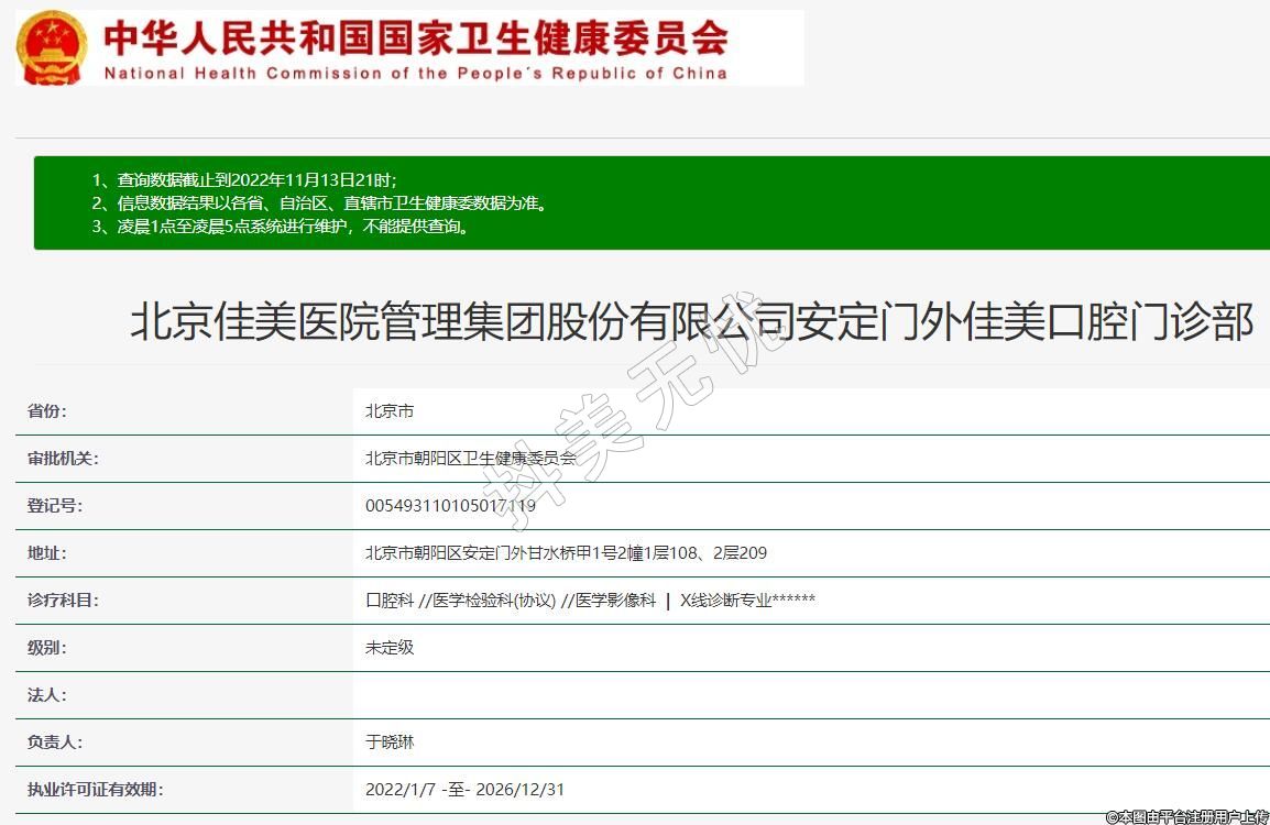 北京佳美醫(yī)院管理集團(tuán)股份有限公司安定門外佳美口腔門診部