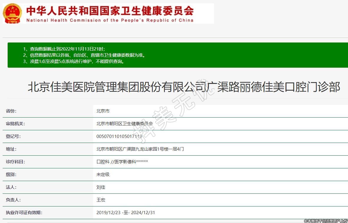 北京佳美醫(yī)院管理集團(tuán)股份有限公司廣渠路麗德佳美口腔門診部
