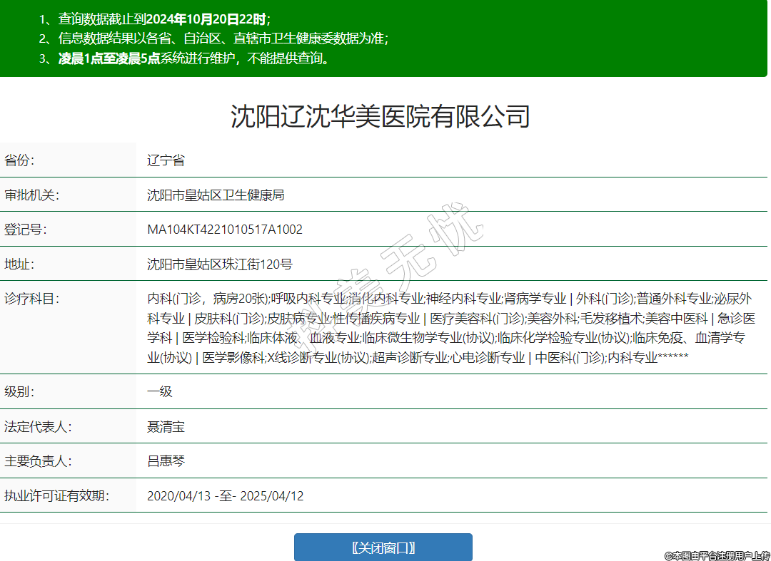 內(nèi)科(門診,病房20張);呼吸內(nèi)科專業(yè);消化內(nèi)科專業(yè);神經(jīng)內(nèi)科專業(yè);腎病學(xué)專業(yè) | 外科(門診);普通外科專業(yè);泌尿外科專業(yè) | 皮膚科(門診);皮膚病專業(yè);性傳播疾病專業(yè) | 醫(yī)療美容科(門診);美容外科;毛發(fā)移植術(shù);美容中醫(yī)科 | 急診醫(yī)學(xué)科 | 醫(yī)學(xué)檢驗(yàn)科;臨床體液、血液專業(yè);臨床微生物學(xué)專業(yè)(協(xié)議);臨床化學(xué)檢驗(yàn)專業(yè)(協(xié)議);臨床免疫、血清學(xué)專業(yè)(協(xié)議) | 醫(yī)學(xué)影像科;X線診斷專業(yè)(協(xié)議);超聲診斷專業(yè);心電診斷專業(yè) | 中醫(yī)科(門診);內(nèi)科專業(yè)******