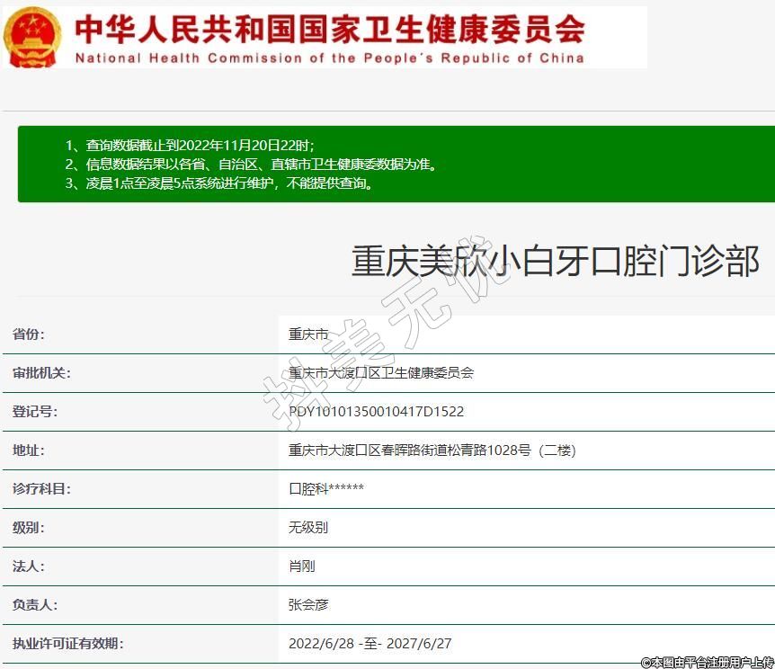 重慶美欣小白牙口腔2022-04-19成立,地址:重慶市大渡口區(qū)春暉路街道松青路1028號(二樓),診療科目:口腔科******