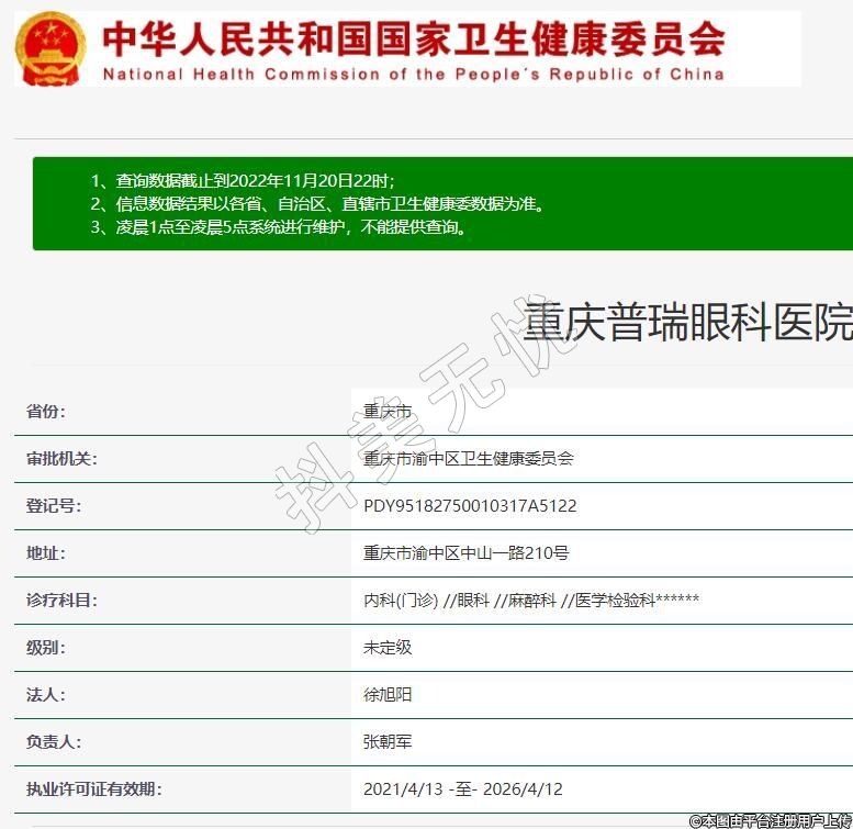 審批機關:重慶市渝中區(qū)衛(wèi)生健康委員會