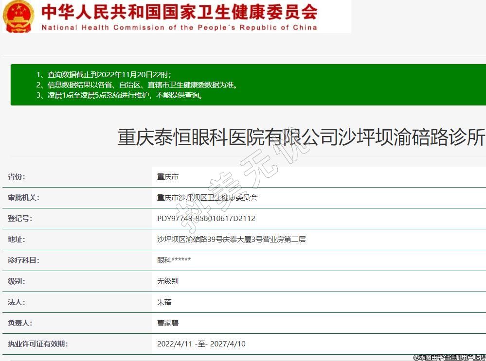 重慶泰恒眼科醫(yī)院有限公司沙坪壩渝碚路診所
