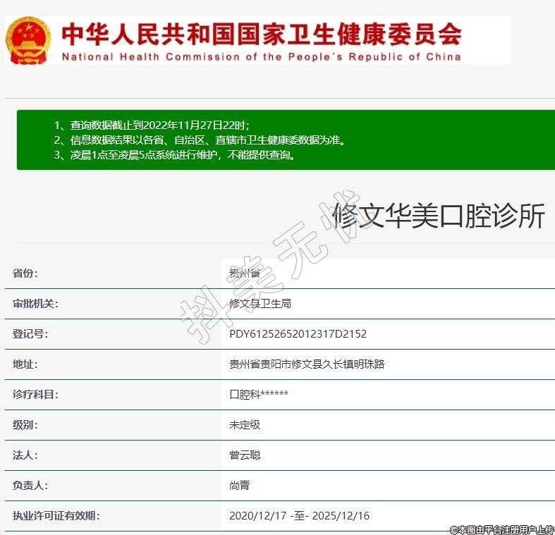 修文華美口腔2015-02-11成立,地址:貴州省貴陽市修文縣久長鎮(zhèn)明珠路,診療科目:口腔科******