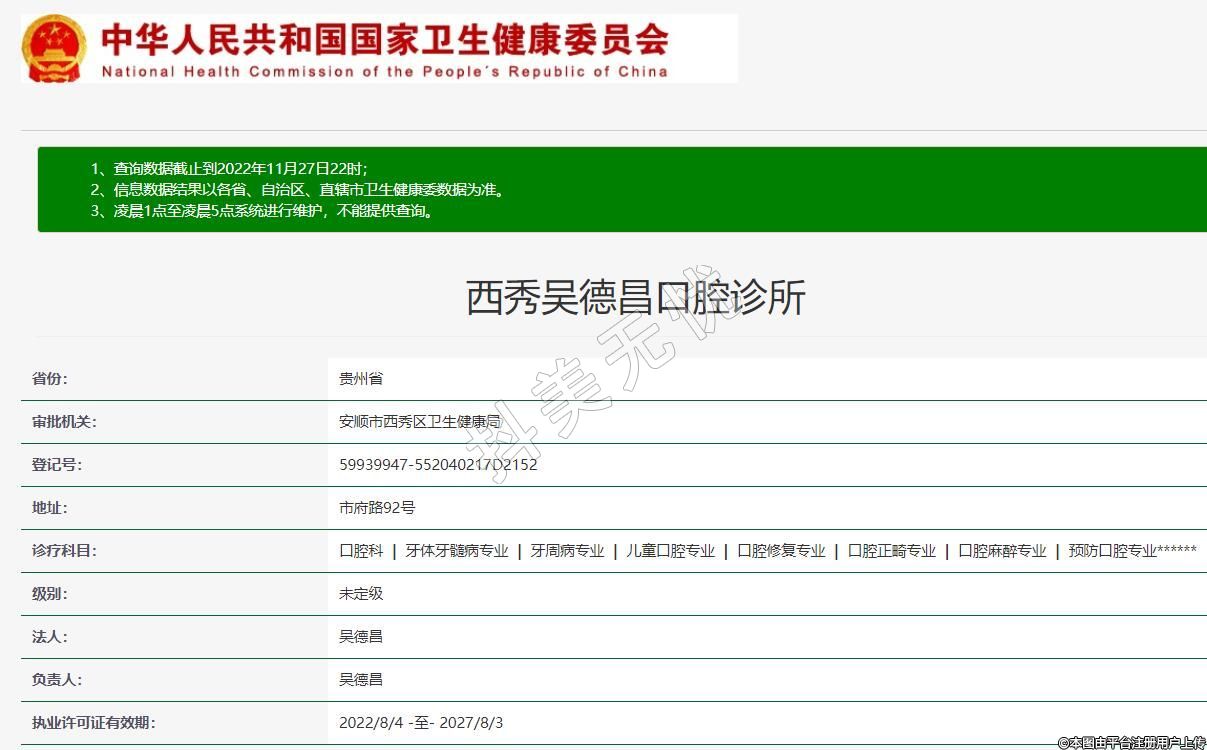 審批機關:安順市西秀區(qū)衛(wèi)生健康局
