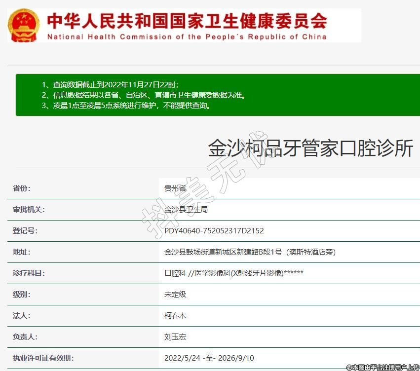金沙柯品牙管家口腔2021-06-22成立,地址:金沙縣鼓場街道新城區(qū)新建路B段1號(澳斯特酒店旁),診療科目:口腔科 //醫(yī)學(xué)影像科(X射線牙片影像)******