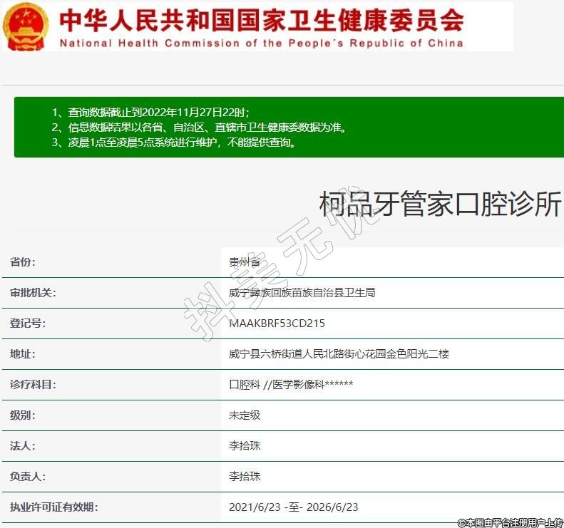 威寧牙管家口腔2021-03-05成立,地址:威寧縣六橋街道人民北路街心花園金色陽光二樓,診療科目:口腔科 //醫(yī)學影像科******