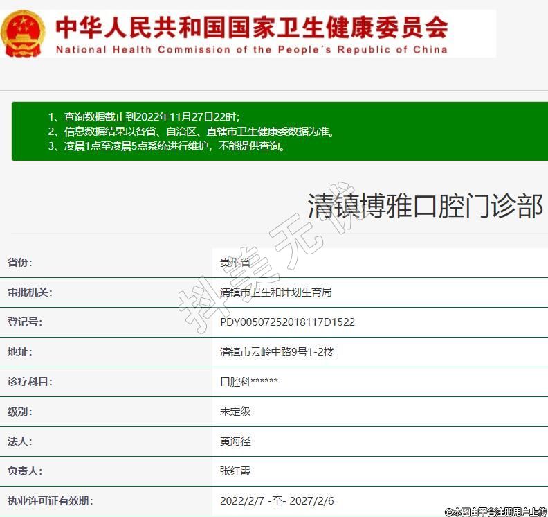 清鎮(zhèn)博雅口腔2021-10-26成立,地址:清鎮(zhèn)市云嶺中路9號1-2樓,診療科目:口腔科******