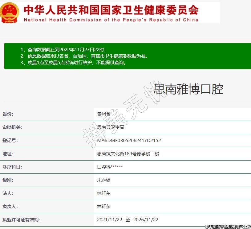 思南雅博口腔2016-08-02成立,診療科目:口腔科******