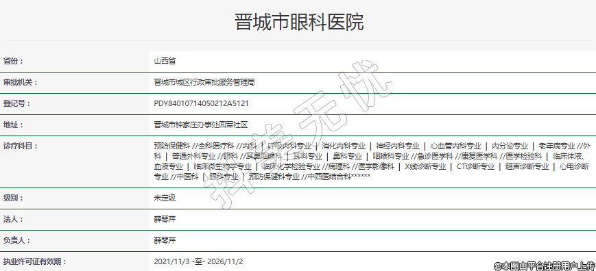 執(zhí)業(yè)許可證有效期:2021/11/3 -至- 2026/11/2