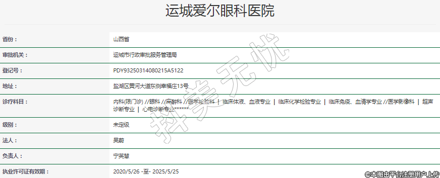執(zhí)業(yè)許可證有效期:2020/5/26 -至- 2025/5/25
