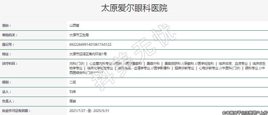 執(zhí)業(yè)許可證有效期:2021/7/27 -至- 2025/5/31