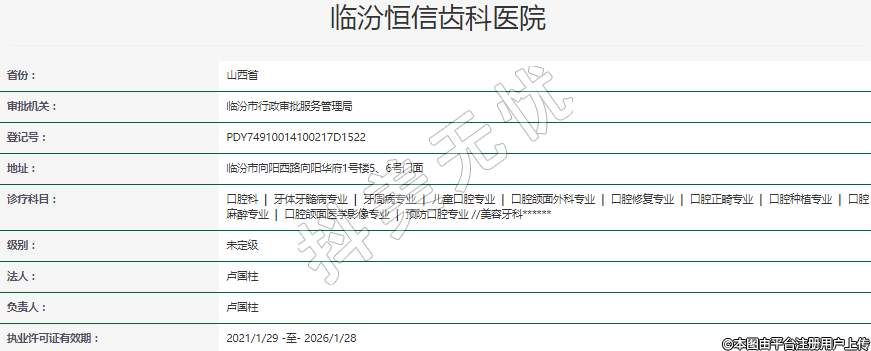 執(zhí)業(yè)許可證有效期:2021/1/29 -至- 2026/1/28