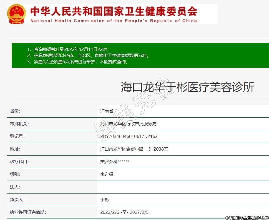 ??邶埲A于彬醫(yī)療美容診所,地址位于 海南省??谑旋埲A區(qū)金貿(mào)中路1號(hào)半山花園海天閣第18層2038室,于2017年03月22日在成立。