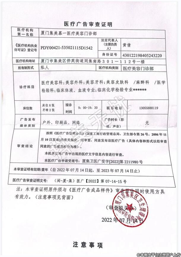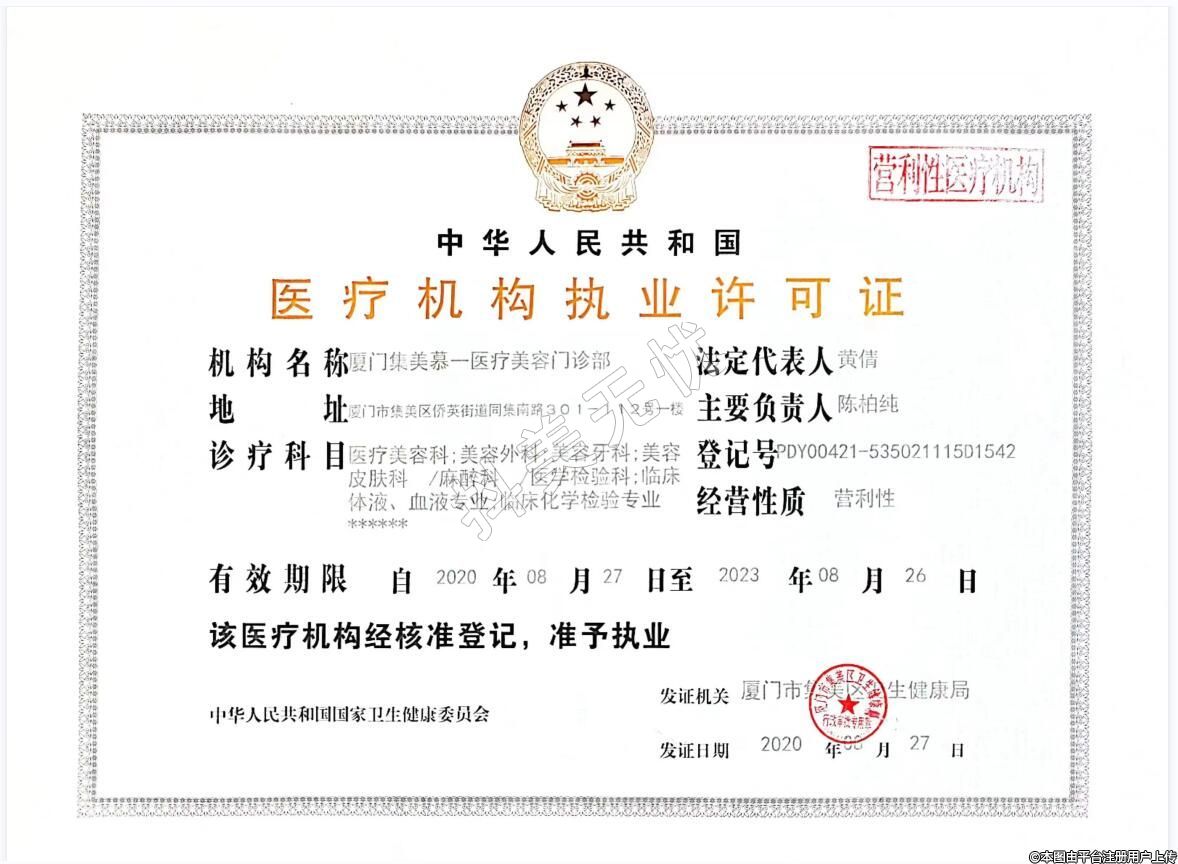 機(jī)構(gòu)名稱:廈門(mén)集美慕一醫(yī)療美容門(mén)診部