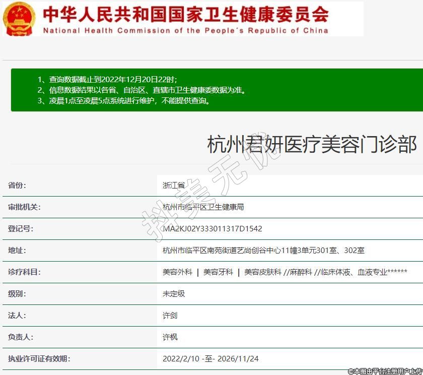 審批機關:杭州市臨平區(qū)衛(wèi)生健康局