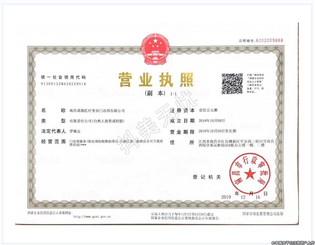 機構名稱:南昌諾顏醫(yī)療美容門診部