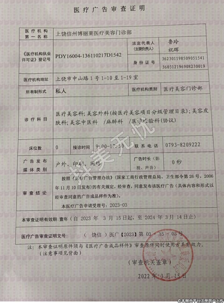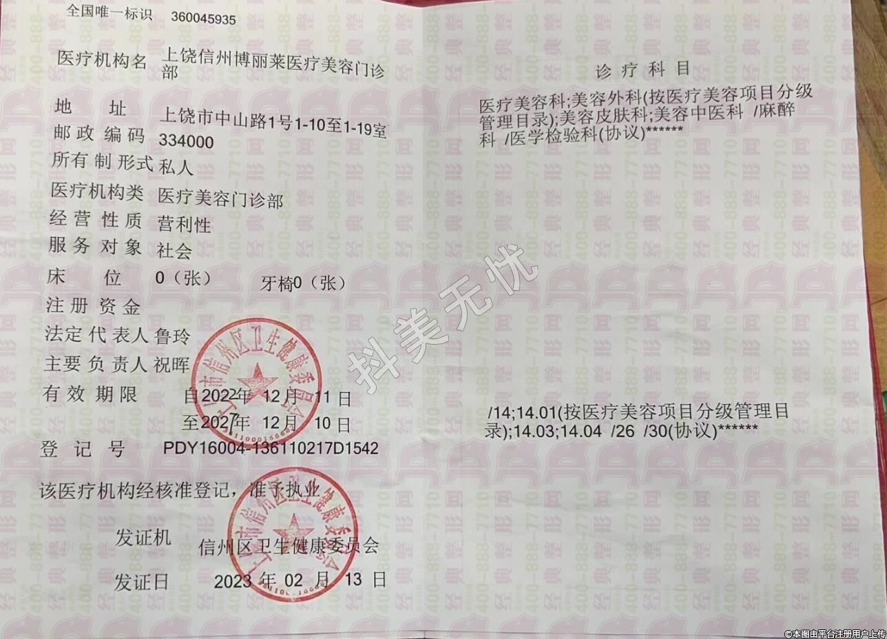 醫(yī)療機(jī)構(gòu)名:上饒信州博麗萊醫(yī)療美容門診部