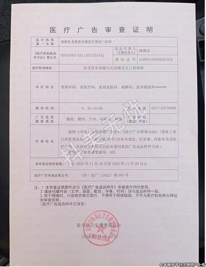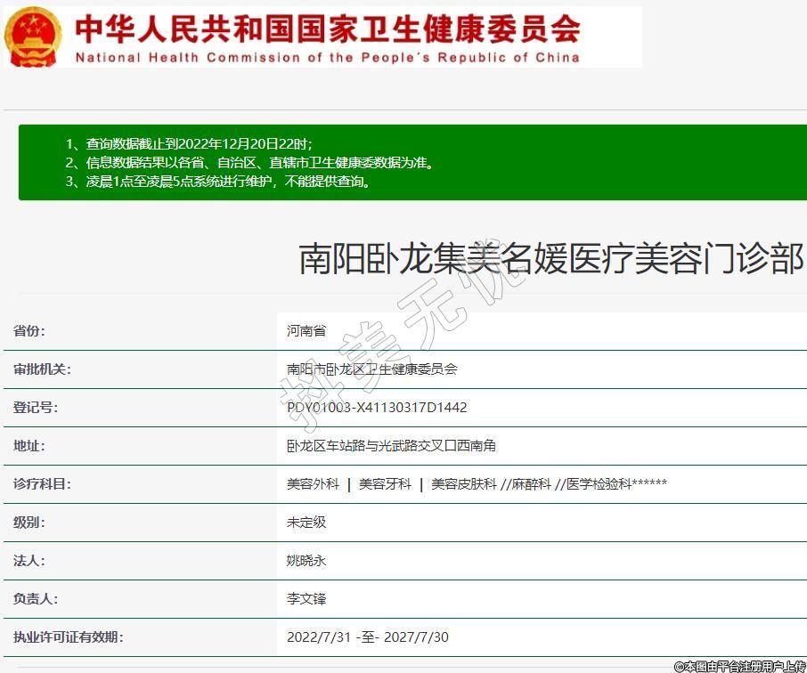 審批機關:南陽市臥龍區(qū)衛(wèi)生健康委員會