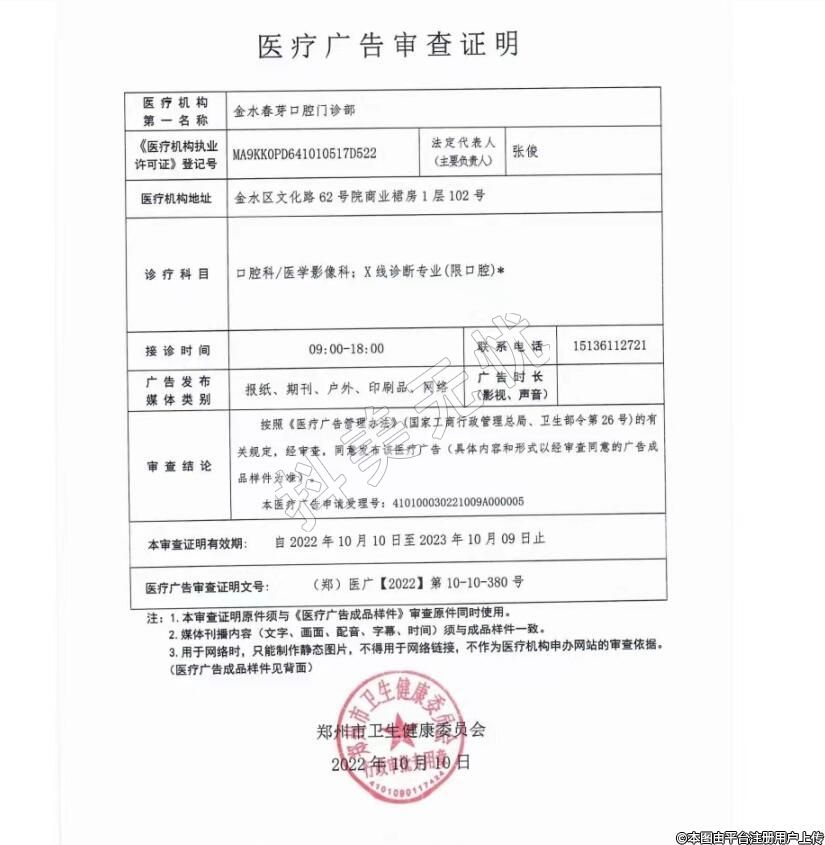 發(fā)證機關(guān):鄭州市金水區(qū)衛(wèi)生健康委員會