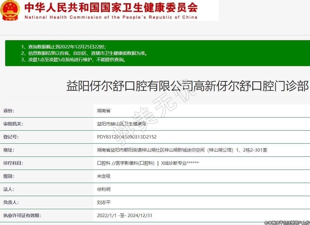 益陽(yáng)伢爾舒口腔有限公司高新伢爾舒口腔門(mén)診部