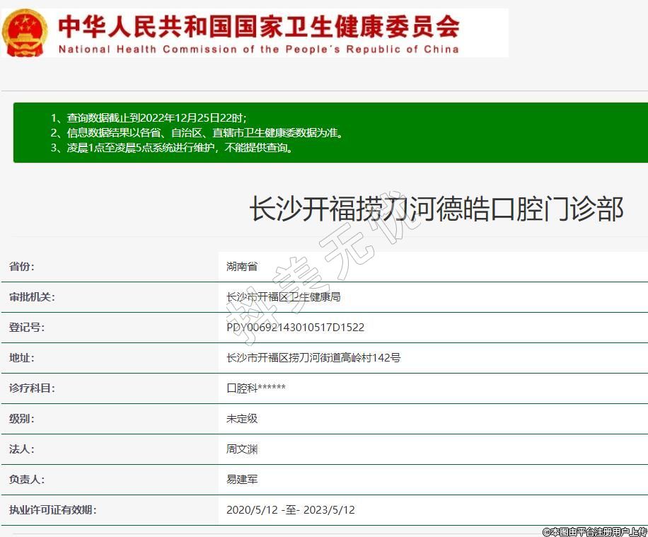 長沙撈刀河德皓口腔,診療科目:口腔科******