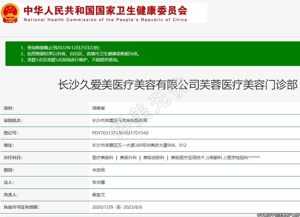 長沙久愛美醫(yī)療美容有限公司芙蓉醫(yī)療美容門診部