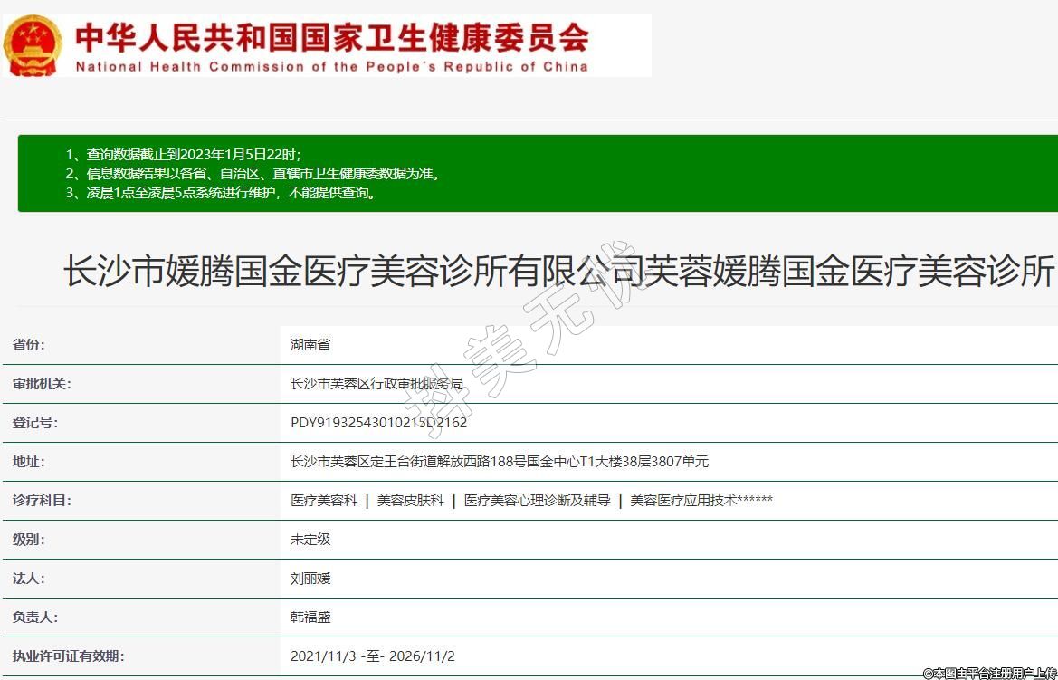 長(zhǎng)沙市媛騰國(guó)金醫(yī)療美容診所有限公司芙蓉媛騰國(guó)金醫(yī)療美容診所