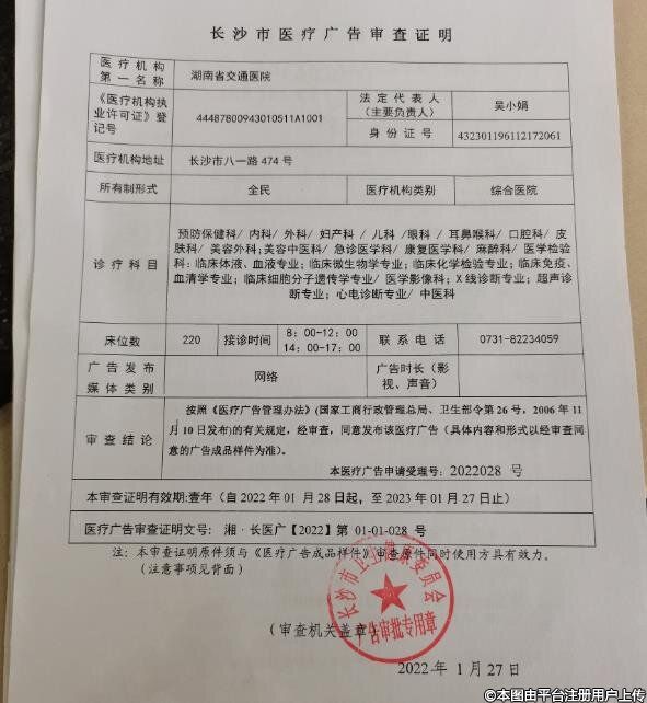 發(fā)證機(jī)關(guān):長沙市衛(wèi)生健康委員會(huì)