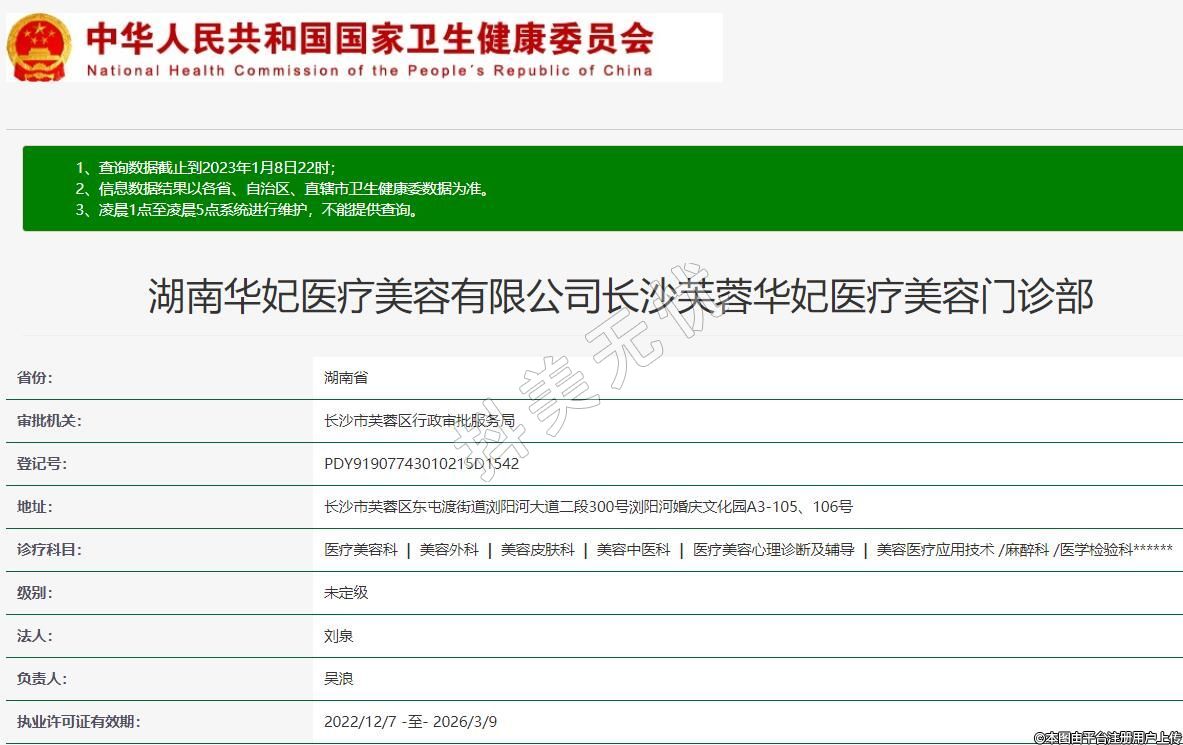 湖南華妃醫(yī)療美容有限公司長(zhǎng)沙芙蓉華妃醫(yī)療美容門診部