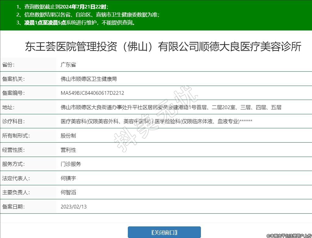 東王薈醫(yī)院管理投資(佛山)有限公司順德大良醫(yī)療美容診所