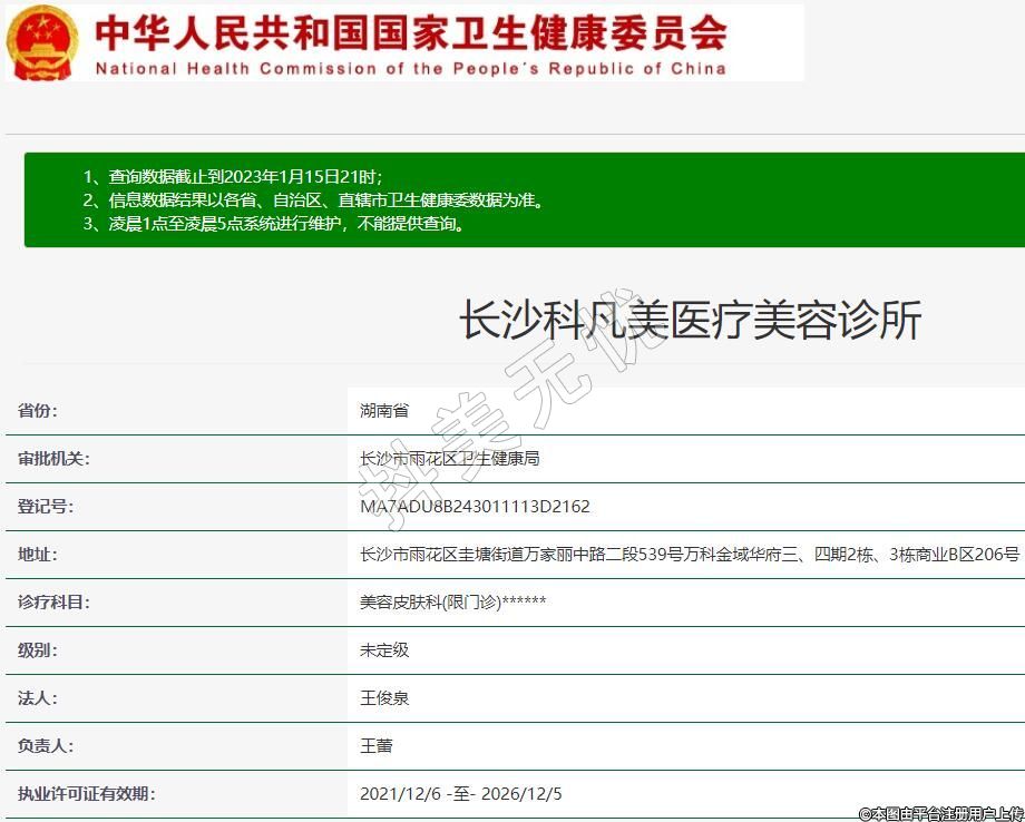 長沙科凡美醫(yī)療美容,診療科目:美容皮膚科(限門診)******