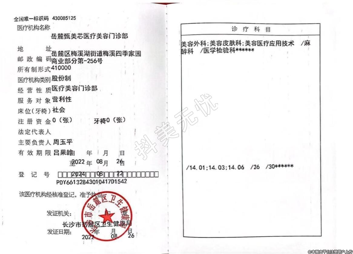 醫(yī)療機(jī)構(gòu)名稱:岳麓甄美芯醫(yī)療美容門診部