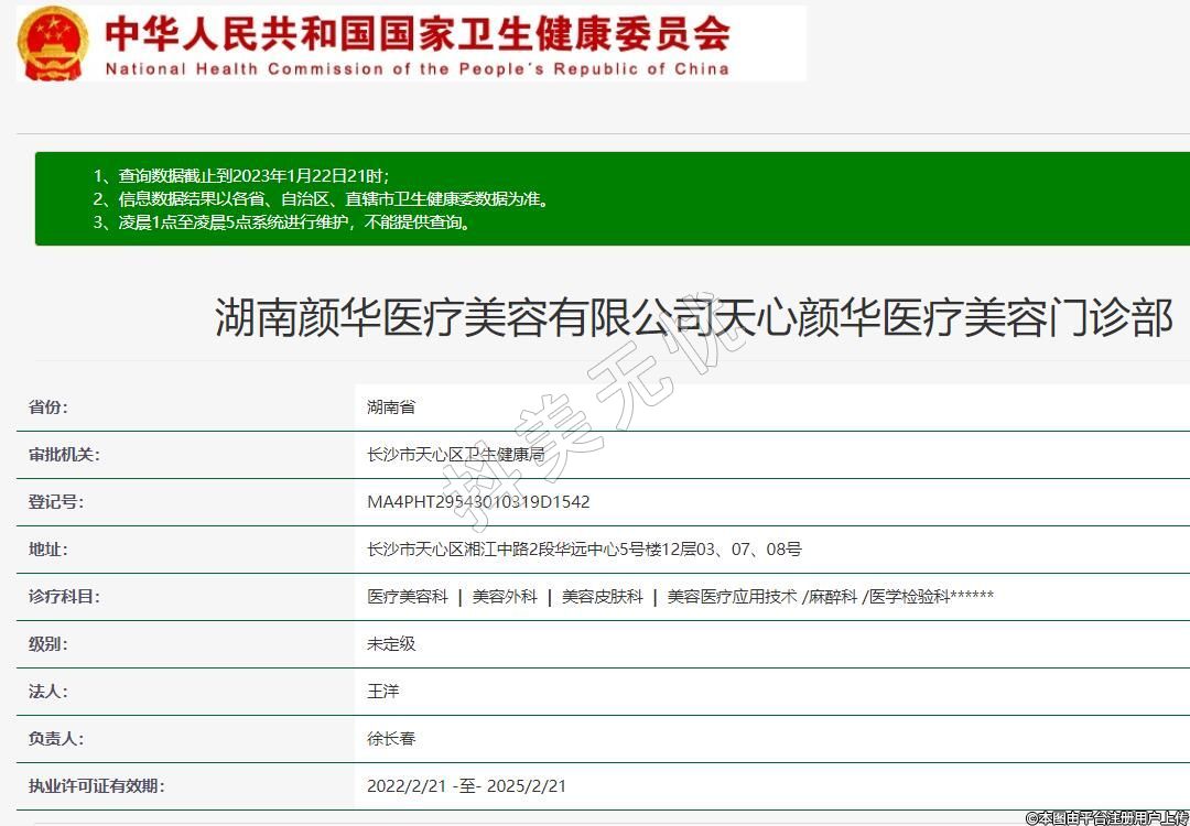 湖南顏華醫(yī)療美容有限公司天心顏華醫(yī)療美容門診部