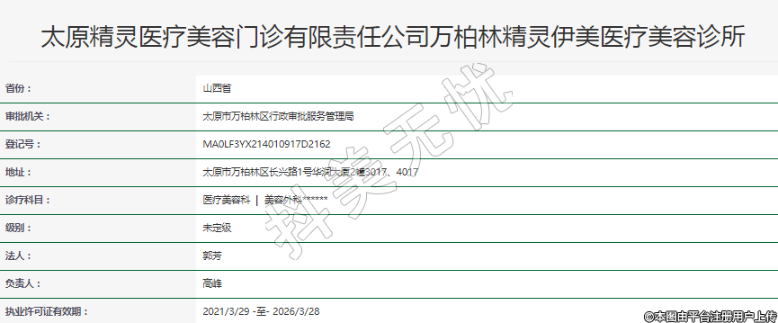 太原精靈醫(yī)療美容門診有限責(zé)任公司萬柏林精靈伊美醫(yī)療美容診所