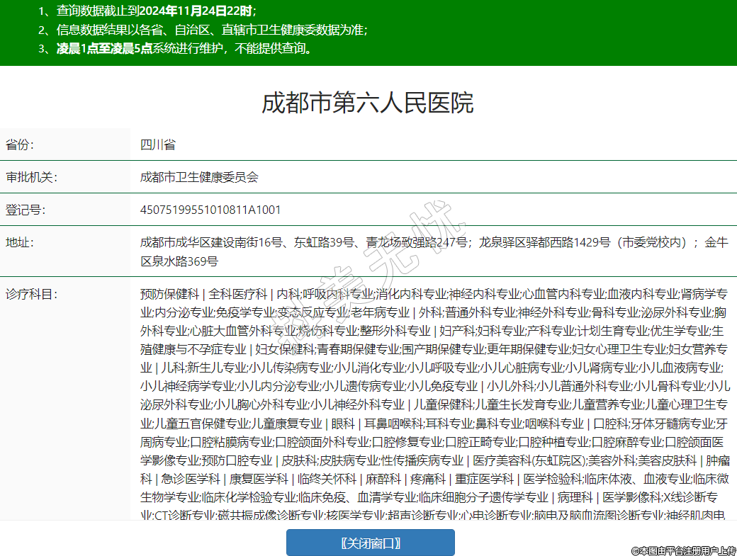 預(yù)防保健科 | 全科醫(yī)療科 | 內(nèi)科;呼吸內(nèi)科專業(yè);消化內(nèi)科專業(yè);神經(jīng)內(nèi)科專業(yè);心血管內(nèi)科專業(yè);血液內(nèi)科專業(yè);腎病學(xué)專業(yè);內(nèi)分泌專業(yè);免疫學(xué)專業(yè);變態(tài)反應(yīng)專業(yè);老年病專業(yè) | 外科;普通外科專業(yè);神經(jīng)外科專業(yè);骨科專業(yè);泌尿外科專業(yè);胸外科專業(yè);心臟大血管外科專業(yè);燒傷科專業(yè);整形外科專業(yè) | 婦產(chǎn)科;婦科專業(yè);產(chǎn)科專業(yè);計(jì)劃生育專業(yè);優(yōu)生學(xué)專業(yè);生殖健康與不孕癥專業(yè) | 婦女保健科;青春期保健專業(yè);圍產(chǎn)期保健專業(yè);更年期保健專業(yè);婦女心理衛(wèi)生專業(yè);婦女營養(yǎng)專業(yè) | 兒科;新生兒專業(yè);小兒傳染病專業(yè);小兒消化專業(yè);小兒呼吸專業(yè);小兒心臟病專業(yè);小兒腎病專業(yè);小兒血液病專業(yè);小兒神經(jīng)病學(xué)專業(yè);小兒內(nèi)分泌專業(yè);小兒遺傳病專業(yè);小兒免疫專業(yè) | 小兒外科;小兒普通外科專業(yè);小兒骨科專業(yè);小兒泌尿外科專業(yè);小兒胸心外科專業(yè);小兒神經(jīng)外科專業(yè) | 兒童保健科;兒童生長發(fā)育專業(yè);兒童營養(yǎng)專業(yè);兒童心理衛(wèi)生專業(yè);兒童五官保健專業(yè);兒童康復(fù)專業(yè) | 眼科 | 耳鼻咽喉科;耳科專業(yè);鼻科專業(yè);咽喉科專業(yè) | 口腔科;牙體牙髓病專業(yè);牙周病專業(yè);口腔粘膜病專業(yè);口腔頜面外科專業(yè);口腔修復(fù)專業(yè);口腔正畸專業(yè);口腔種植專業(yè);口腔麻醉專業(yè);口腔頜面醫(yī)學(xué)影像專業(yè);預(yù)防口腔專業(yè) | 皮膚科;皮膚病專業(yè);性傳播疾病專業(yè) | 醫(yī)療美容科(東虹院區(qū));美容外科;美容皮膚科 | 腫瘤科 | 急診醫(yī)學(xué)科 | 康復(fù)醫(yī)學(xué)科 | 臨終關(guān)懷科 | 麻醉科 | 疼痛科 | 重癥醫(yī)學(xué)科 | 醫(yī)學(xué)檢驗(yàn)科;臨床體液、血液專業(yè);臨床微生物學(xué)專業(yè);臨床化學(xué)檢驗(yàn)專業(yè);臨床免疫、血清學(xué)專業(yè);臨床細(xì)胞分子遺傳學(xué)專業(yè) | 病理科 | 醫(yī)學(xué)影像科;X線診斷專業(yè);CT診斷專業(yè);磁共振成像診斷專業(yè);核醫(yī)學(xué)專業(yè);超聲診斷專業(yè);心電診斷專業(yè);腦電及腦血流圖診斷專業(yè);神經(jīng)肌肉電圖專業(yè);介入放射學(xué)專業(yè) | 中醫(yī)科;內(nèi)科專業(yè);外科專業(yè);婦產(chǎn)科專業(yè);兒科專業(yè);皮膚科專業(yè);眼科專業(yè);耳鼻咽喉科專業(yè);口腔科專業(yè);腫瘤科專業(yè);骨傷科專業(yè);肛腸科專業(yè);老年病科專業(yè);針灸科專業(yè);推拿科專業(yè);康復(fù)醫(yī)學(xué)專業(yè);急診科專業(yè) | 中西醫(yī)結(jié)合科(其他許可信息詳見副本)******