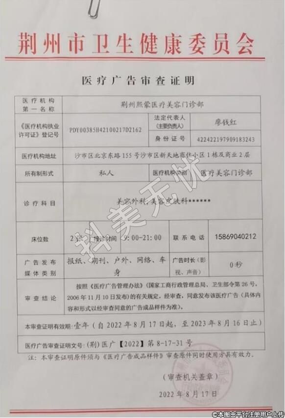 發(fā)證機(jī)關(guān):荊州市沙市區(qū)衛(wèi)生健康局