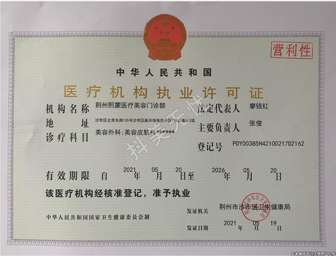 機(jī)構(gòu)名稱:荊州熙蒙醫(yī)療美容門診部