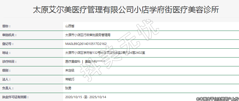 太原艾爾美醫(yī)療管理有限公司小店學(xué)府街醫(yī)療美容診所