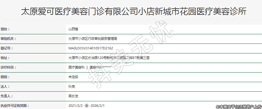太原愛(ài)可醫(yī)療美容門(mén)診有限公司小店新城市花園醫(yī)療美容診所