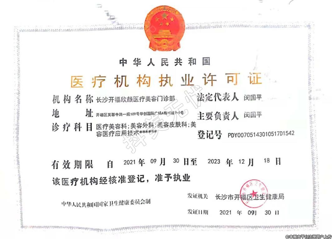 發(fā)證機關:長沙市開福區(qū)衛(wèi)生健康局