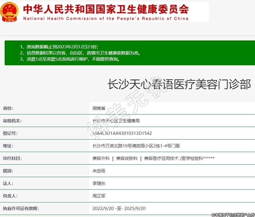 審批機關(guān):長沙市天心區(qū)衛(wèi)生健康局