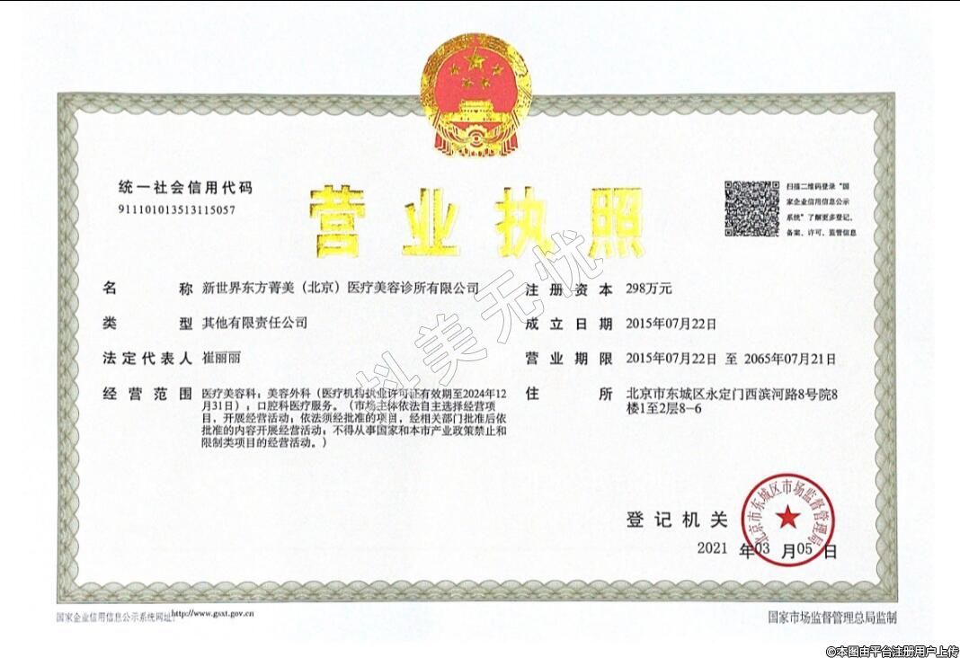 機構(gòu)名稱:新世界東方菁美(北京)醫(yī)療美容診所
