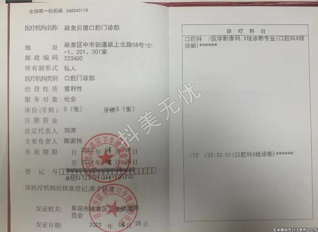 醫(yī)療機(jī)構(gòu)名稱:潁泉貝德口腔門診部