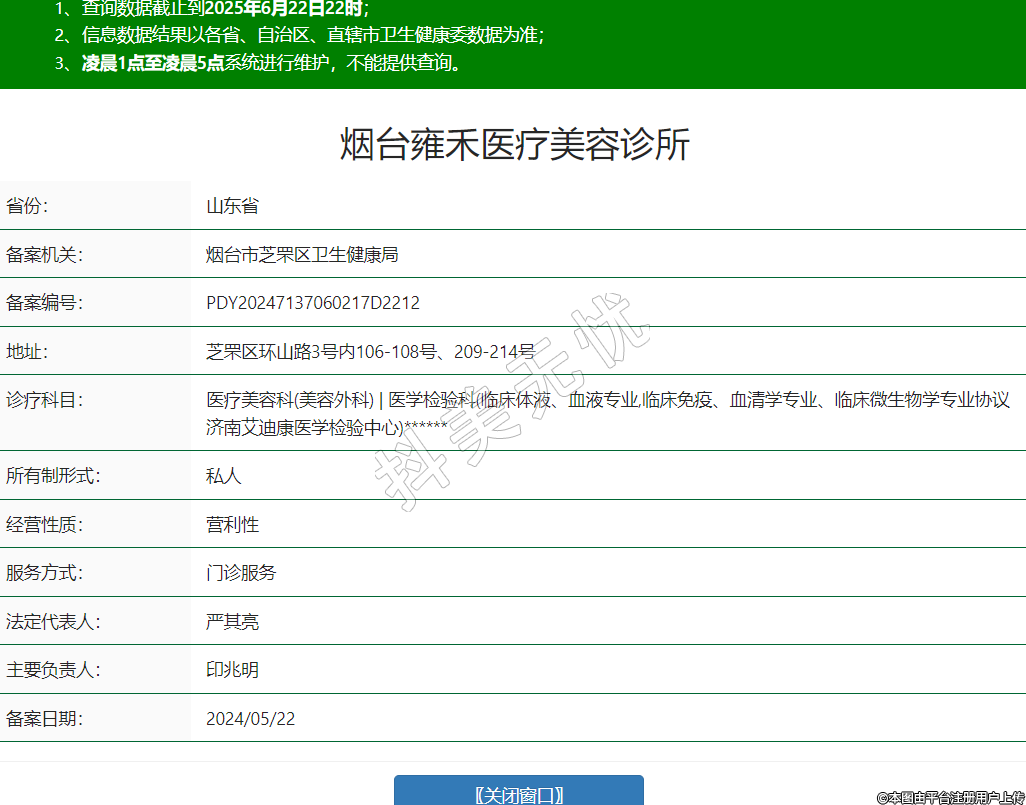 省份:山東省備案機(jī)關(guān):煙臺(tái)市芝罘區(qū)衛(wèi)生健康局備案編號(hào):PDY20247137060217D2212地址:芝罘區(qū)環(huán)山路3號(hào)內(nèi)106-108號(hào)、209-214號(hào)診療科目:醫(yī)療美容科(美容外科) | 醫(yī)學(xué)檢驗(yàn)科(臨床體液、血液專業(yè),臨床免疫、血清學(xué)專業(yè)、臨床微生物學(xué)專業(yè)協(xié)議濟(jì)南艾迪康醫(yī)學(xué)檢驗(yàn)中心)******所有制形式:私人經(jīng)營性質(zhì):營利性服務(wù)方式:門診服務(wù)法定代表人:嚴(yán)其亮主要負(fù)責(zé)人:印兆明備案日期:2024/05/22 -