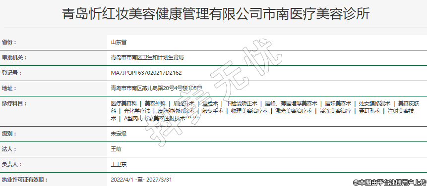 青島忻紅妝美容健康管理有限公司市南醫(yī)療美容診所