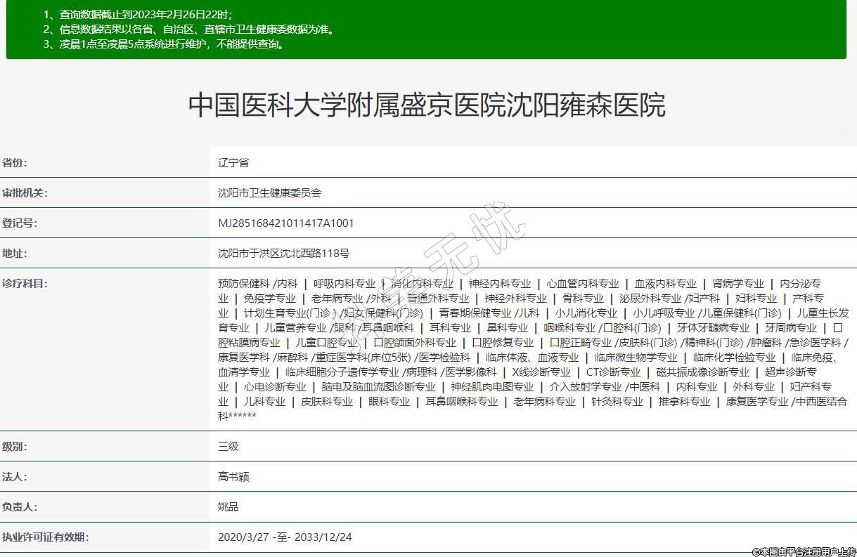 中國醫(yī)科大學附屬盛京醫(yī)院沈陽雍森醫(yī)院